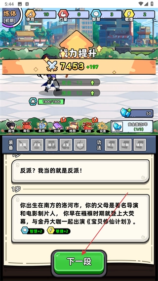 3、在游戏过程中会遇到各种事件,点击下一段按钮开启角色的下一段旅程。