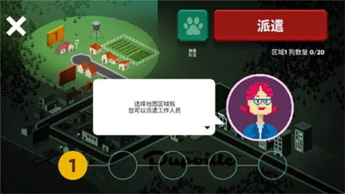 3、选择一个区域派遣您的工作人员去找流浪狗,不同的地区有不同的狗。