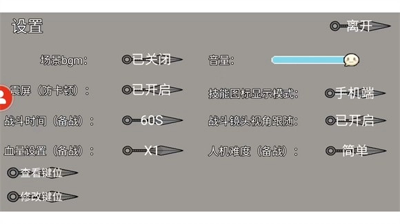 3、在开始游戏之前,您可以点击“设置”选项,调整音量、视角、时间、血量和键位等游戏参数。设置完毕后,选择“对战”模式进入战斗。