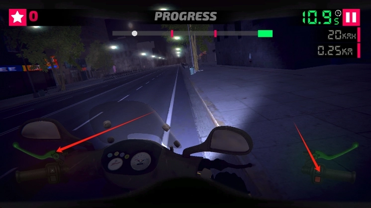 1. 骑上初始街车,于城市环线启程,初次感受以第一人称视角躲避车流的操作。