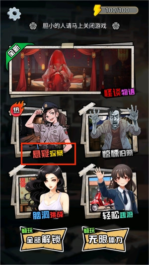 2、选择:悬疑探案模式。