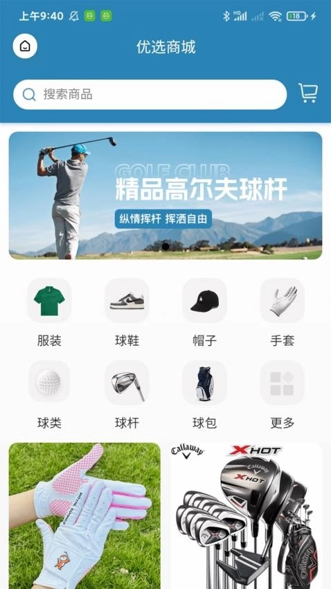 3. 商城浏览:提供各类高尔夫用品选购,从球杆到服饰一应俱全,让大家更好的购买。