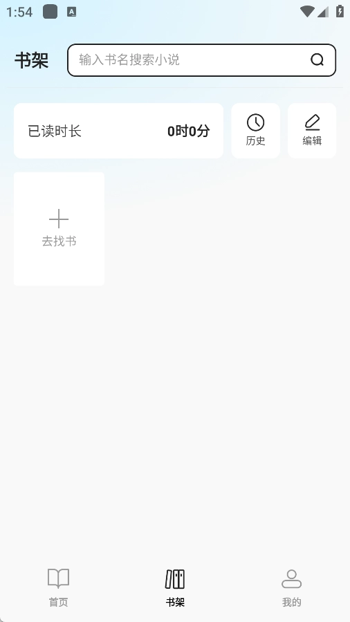2、在书架中可以搜索各类小说,还可以了解已读时长,同时可以进行编辑。
