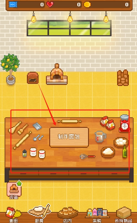 2、点厨房按钮做面包,红圈里的东西要特别注意。