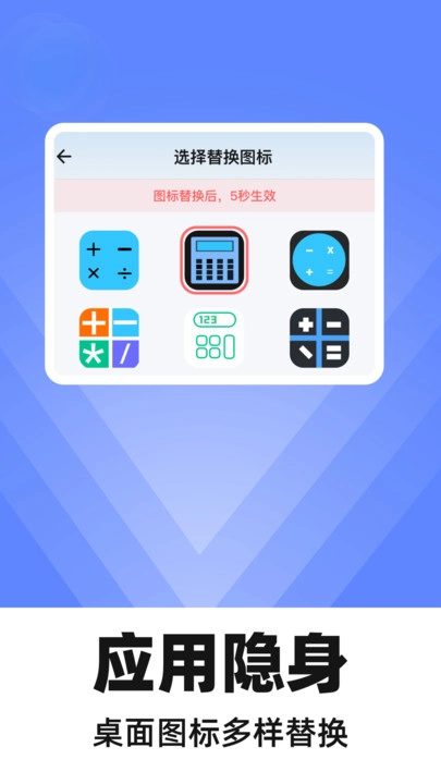 1. 能够把隐藏应用的图标,伪装成计算器或者其他常见应用的模样,以防被察觉。