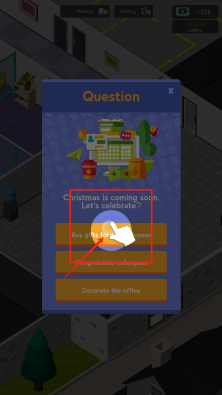 1. 轻点圣诞活动选项,从中挑选礼物或者装饰,与同事相互配合完成任务,进而赚取奖励。