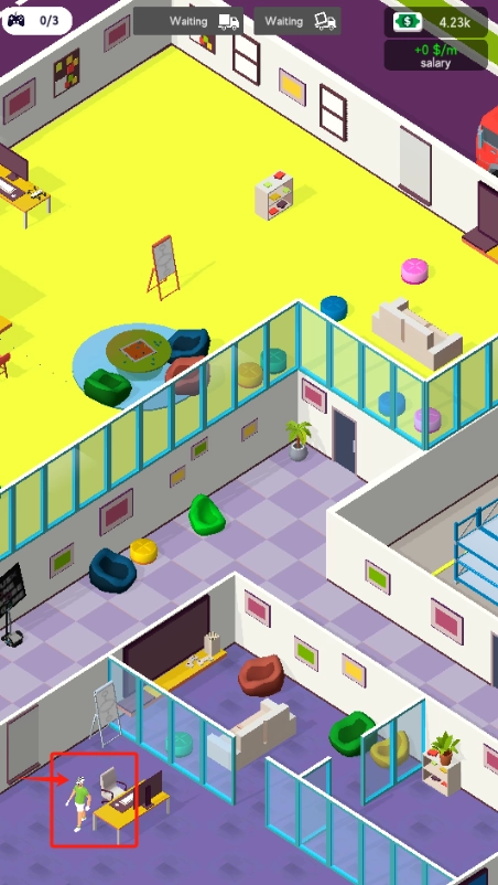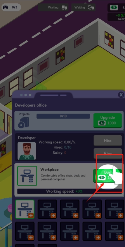 2、花25块买新工位,攒够1000升级办公室,提升员工干活速度。