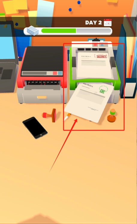 1. 当看到DAY1提示时,拿起红框内的印章,盖于工资单之上。