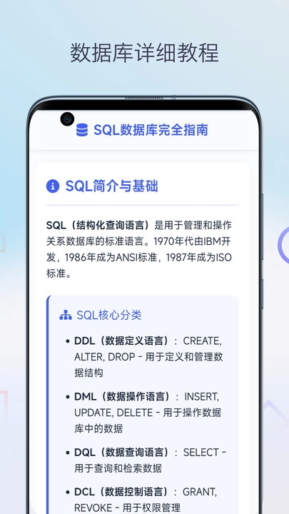 2、产品包含详细的 SQL 数据库教程,深入浅出,知识点涵盖全面。