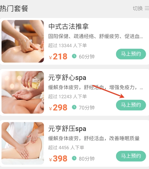 2、用户可以直接来这进行套餐选择,一键即可快速在线预约。