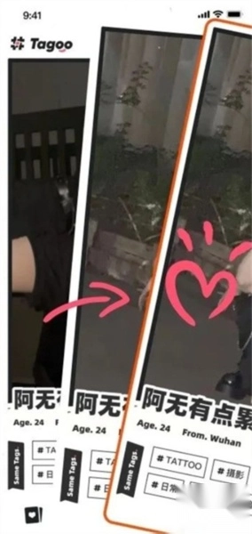 1、进入首页后,若对某位用户感兴趣,可选择向右滑动表示喜欢。