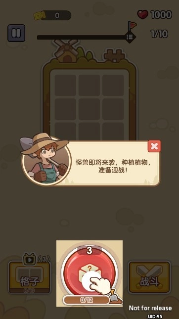 玩家需要在中央的田地格子上种植各种植物,每种植物有独特的攻击范围、技能和属性。合理布置植物阵型,利用各类植物的特点,才能有效抵御来自四面八方的怪物进攻。