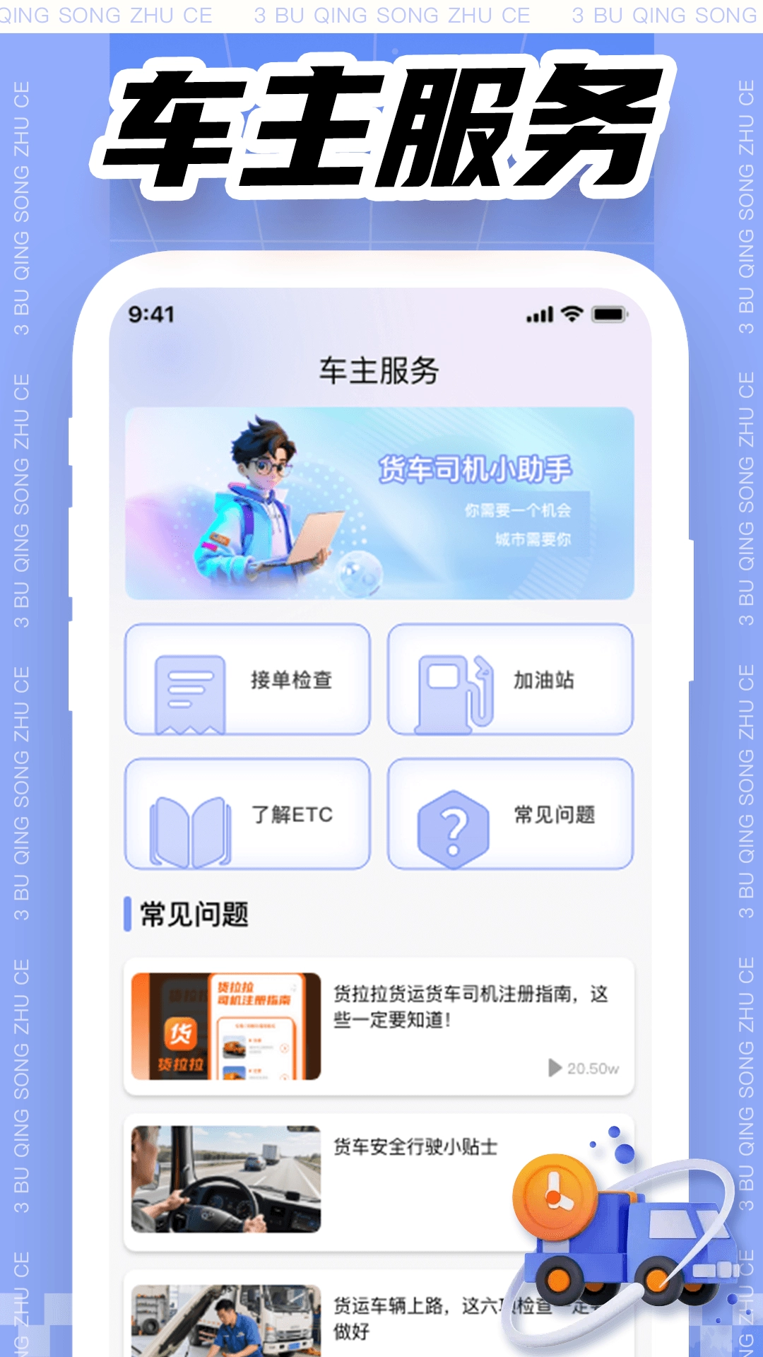 3、常见问题板块,提供详细解决方案,帮助司机快速解决工作中遇到的各类问题。