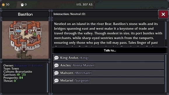 5、在地图上的城镇处点击进入,你可以在这里招募兵员或出售不需要的物品。