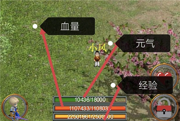 无论是在线还是离线战斗,都得消耗元气;游戏界面正下方的绿色条代表元气,红色条对应血量,黄色条则显示人物的经验值。