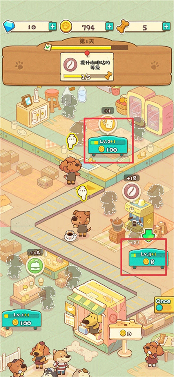 3、洗好的杯子会传送到咖啡馆,待负责做咖啡的小狗完成制作后,点击即可送出。