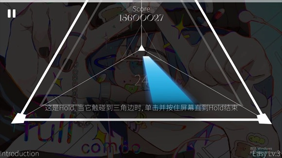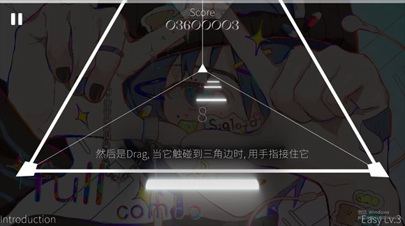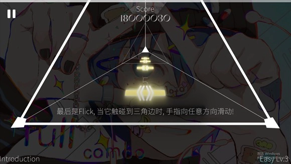 当音符到达三角形的边缘时,点击该音符就能完成相应操作。
