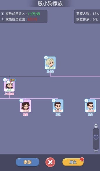 5、通过主界面右下方的家族按钮,能够直观查看当前的家族成员分布以及家族地位变动。