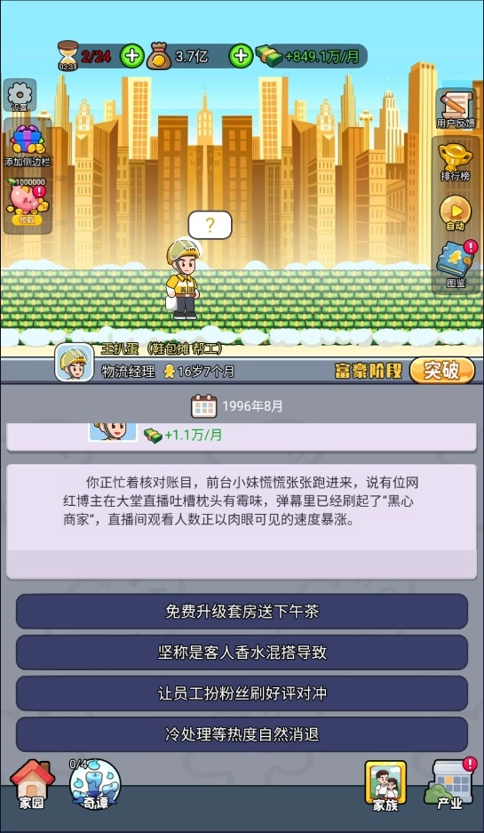 4、人生没有剧本,从都市职场到市井生活,每一步都要靠玩家一步步闯出来。