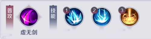 首先普攻方面选择虚无剑,这个是伤害最高的,都选这个就对了,后面都默认选择虚无剑,就不再另外讲了。为了方便讲解,我们按技能顺序,分为1技能,2技能,3技能
