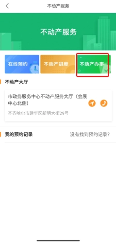 2、在不动产页面中点击不动产办事按钮;
