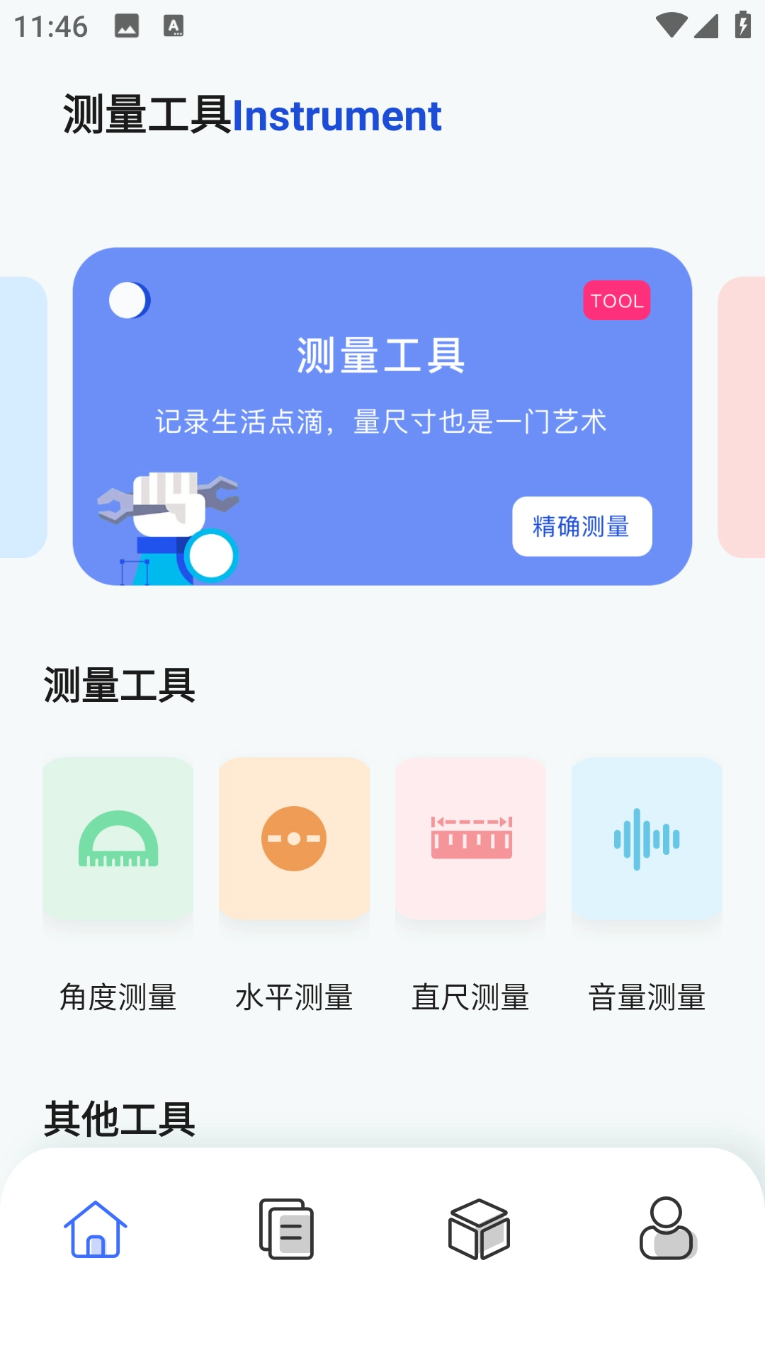 2、首页集成了各种测量工具,用户可以选择自己需要的点击进入使用;