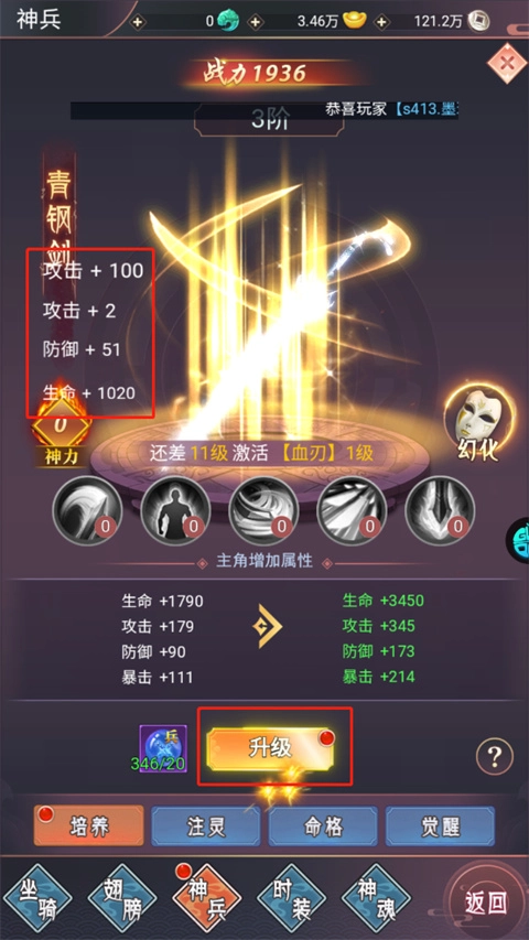 3、下方我们可以看到4种升级方式,比如培养、注灵、命格、觉醒等等;