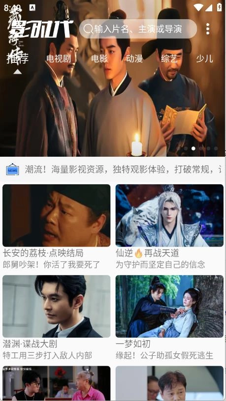 2、进入首页顶部栏中汇集了众多的影视资源,电视剧、电影以及综艺等都有。