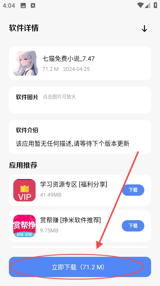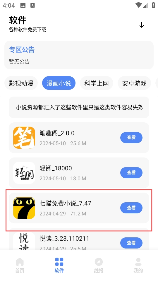 3、任意选择你感兴趣的资源进行,选择的是“七猫免费小说”为例