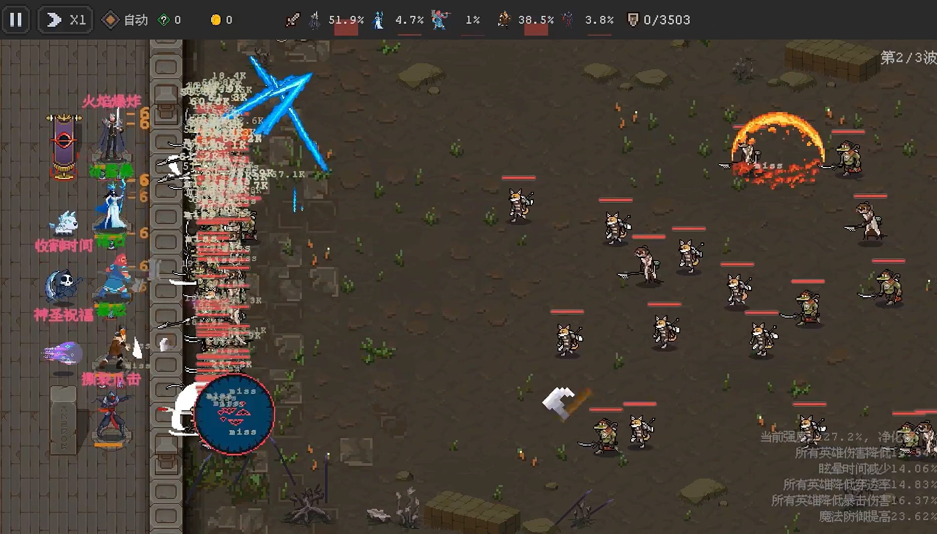3、战斗中,英雄会自动锁定并攻击最近的敌人,玩家主要负责策略和技能释放。