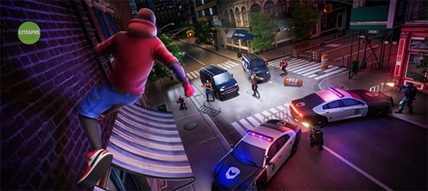 1、提供多种地图和场景,玩家可以自由穿梭于城市的街道、高楼和小巷之间。