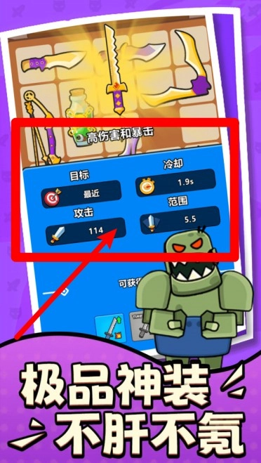 1.装备属性面板显示武器攻击力、冷却时间与攻击范围,合理搭配可提升输出效率应对大波僵尸。