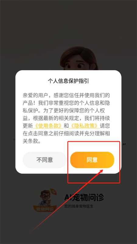 1. 安装软件,在同意使用条款与隐私政策之后方可进入。