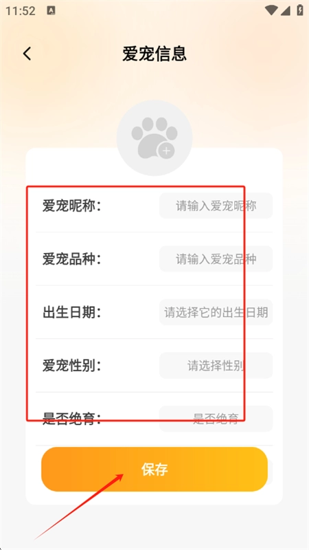 2、然后输入你的爱宠信息后点击下方的保存即可。