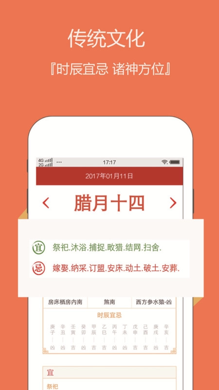 提供了完整的万年历功能,可以帮助用户查询凶日吉日,办事挑个喜庆的日子。