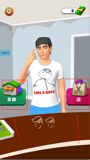 1. 进入游戏,选择初始的店面布局,随即开始接待顾客,依据顾客需求开展发型设计与服务。