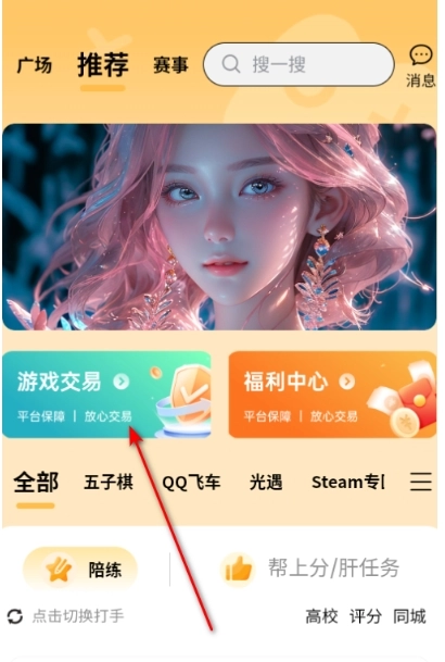 1. 在首页,能够依据游戏分类来查找各类陪玩服务。