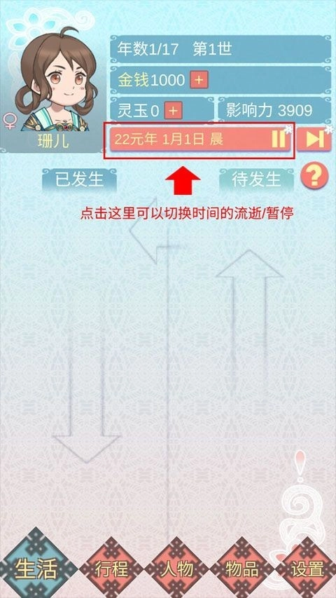 3、正式开始后,玩家可随意调整时间的流逝,让时间流动或是暂停。