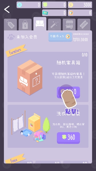 4、玩家能够在游戏中使用经营赚取到的金币购买家具全部都是以开盲盒的形式,全部随机。