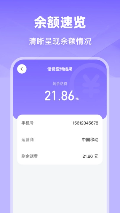 话费流量查询监控是一款专注于通信管理的得力工具,致力于为用户提供高效、便捷的话费与流量查询服务。它不仅具备基础的话费、流量查询功能,还贴心整合了流量换算、Ping 查询等实用小工具,搭配丰富精彩的通信相关资讯,让你在一站式体验中全面掌握通信动态。使用方式简单便捷,仅需输入手机号、轻松选定运营商,即可在话费查询结果页快速、清晰地获取剩余话费金额。