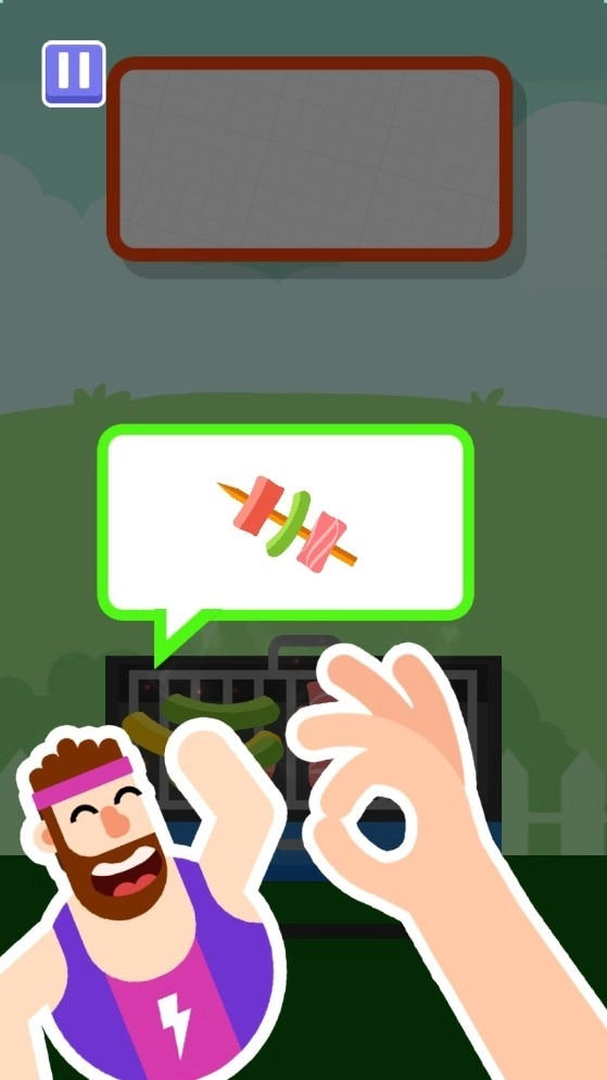 2、开局顾客会提出对烤串的具体需求,观察画面上方的红色箭头,箭头指向的位置即是当前需优先处理的食材。