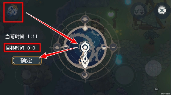 2、点击左上角的像素风派蒙图标,可以修改游戏内的时间,不同的时间段将影响部分场景和特定角色的出现。