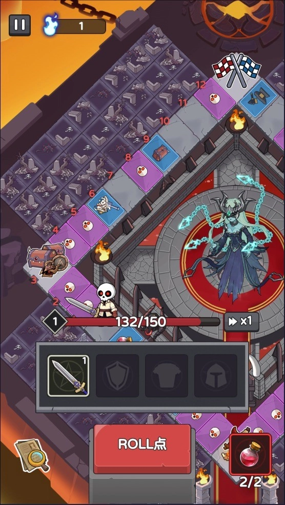 1、玩家借助掷骰子确定前进步数,并展开战斗。