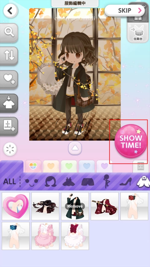 想换衣服时,可以进入换装界面,挑选衣橱里的服饰、发饰、项链等搭配,之后就能给角色举办时装秀了。