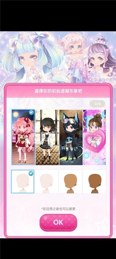 2、接下来,玩家可以选择一个初始虚拟人物形象,还可以通过下方的四个选项调整人物的肤色。