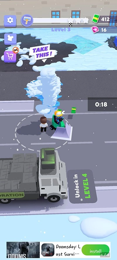 2、每一关你都会接到不同的清洁任务,比如清理冰块、木屑、砖块等各种材质的垃圾。