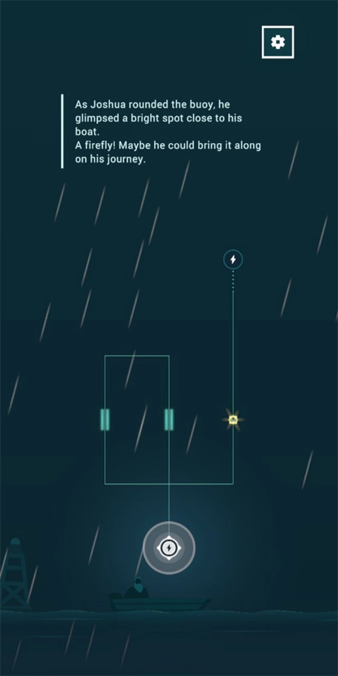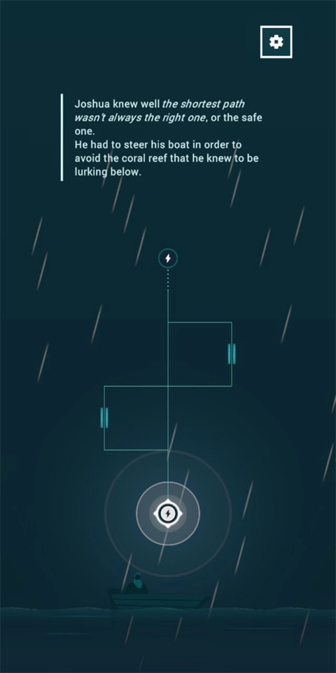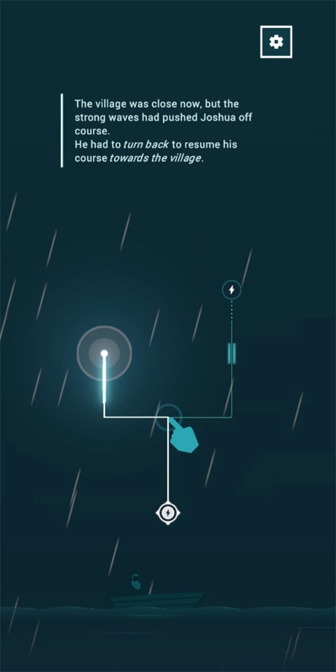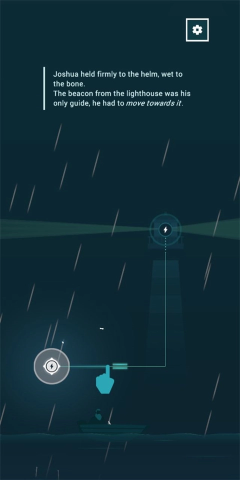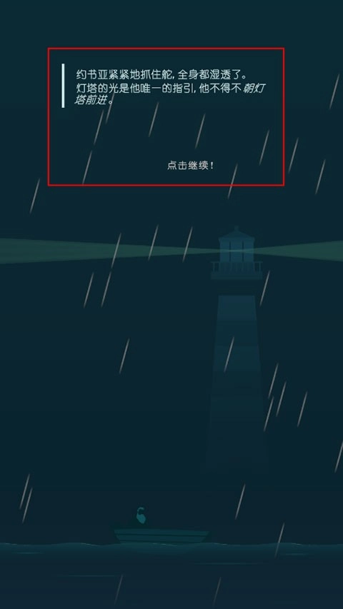 3、主角约书亚在风雨中驾驶小船,唯一的目标就是远方的灯塔。浪很大,你得不断修正航向,小心别被冲走。