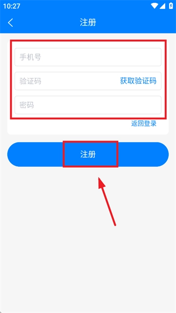 输入手机号,验证码,密码,点击注册即可