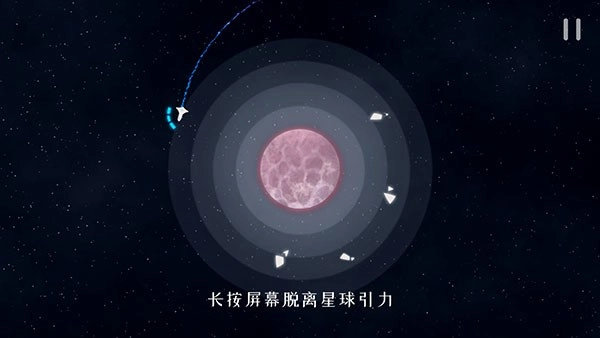 按住屏幕上升,放手下降,操作方式类似重力控制,需要掌握好节奏感,避免撞上星球或漂浮的陨石。陨石的出现位置和轨迹并不固定,有些是悬停不动的障碍,有些则从星际边缘甚至地核中突然冒出,增加了不小的挑战性。每一关的核心目标是回收所有星屑,在环绕飞行中找到最佳路线是关键。