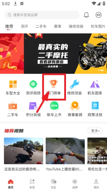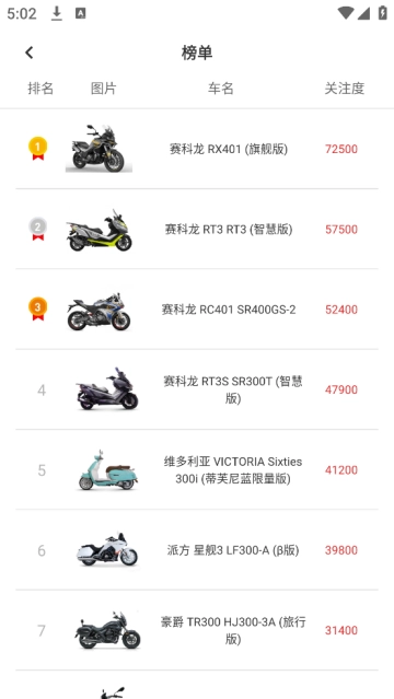 快速了解摩托车榜单,查看新关注度。